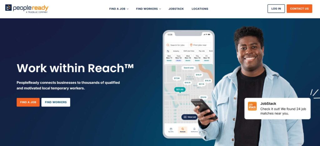 PeopleReady connects workers with jobs in various industries. Some positions offer payment within 24 hours via pay cards or direct deposit. They also offer healthcare plans for employees and their families.