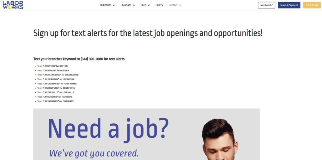With LaborWorks USA, getting paid daily is straightforward. Laborers are hired on a day-to-day basis and receive payment at the end of the day upon redeeming their completed work ticket. They operate primarily in several Midwestern and Southeastern states.